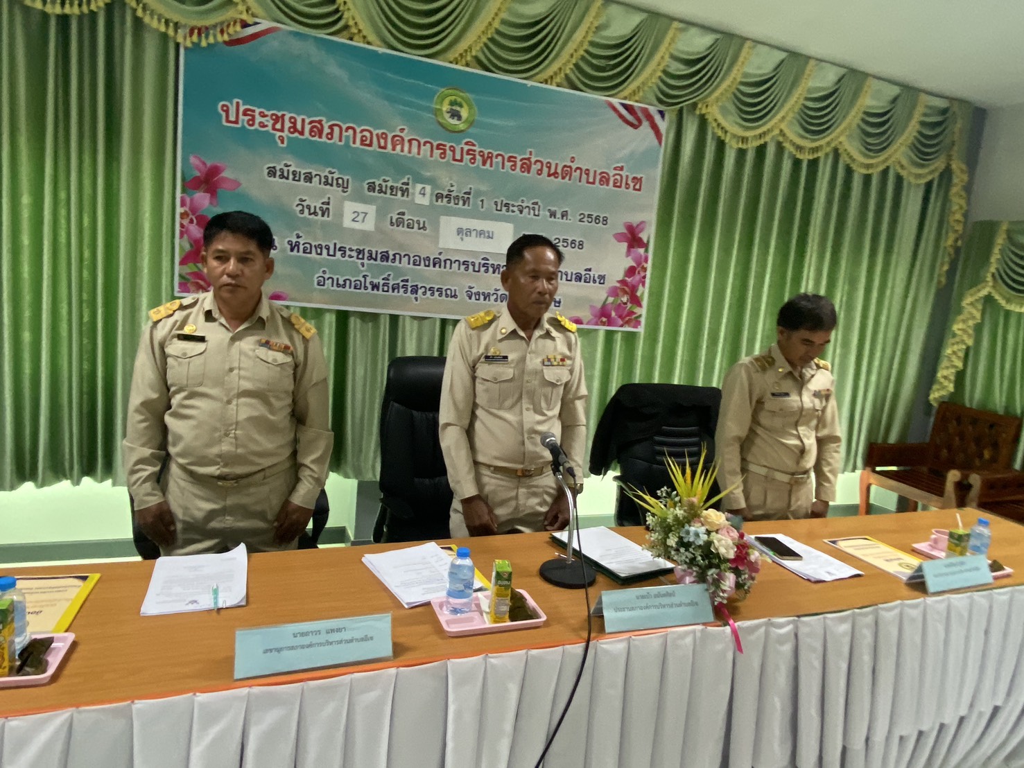 วันที่ 27 ตุลาคม 2568 กิจการสภาองค์การบริหารส่วนตำบลอีเซ ยืนถวายความอาลัยพระราชสมเด็จพระนางเจ้าสิริกิติ์ พระบรมราชินีนาถ พระราชชนนีพันปีหลวง ก่อนดำเนินการประชุมสภาองค์การบริหารส่วนตำบลอีเซสมัยสามัญสมัยที่ 4 ประจำปี พ.ศ.2568 ณ ห้องประชุมสภาองค์การบริหารส่วนตำบลอีเซ ตามระเบียบวาระการประชุม