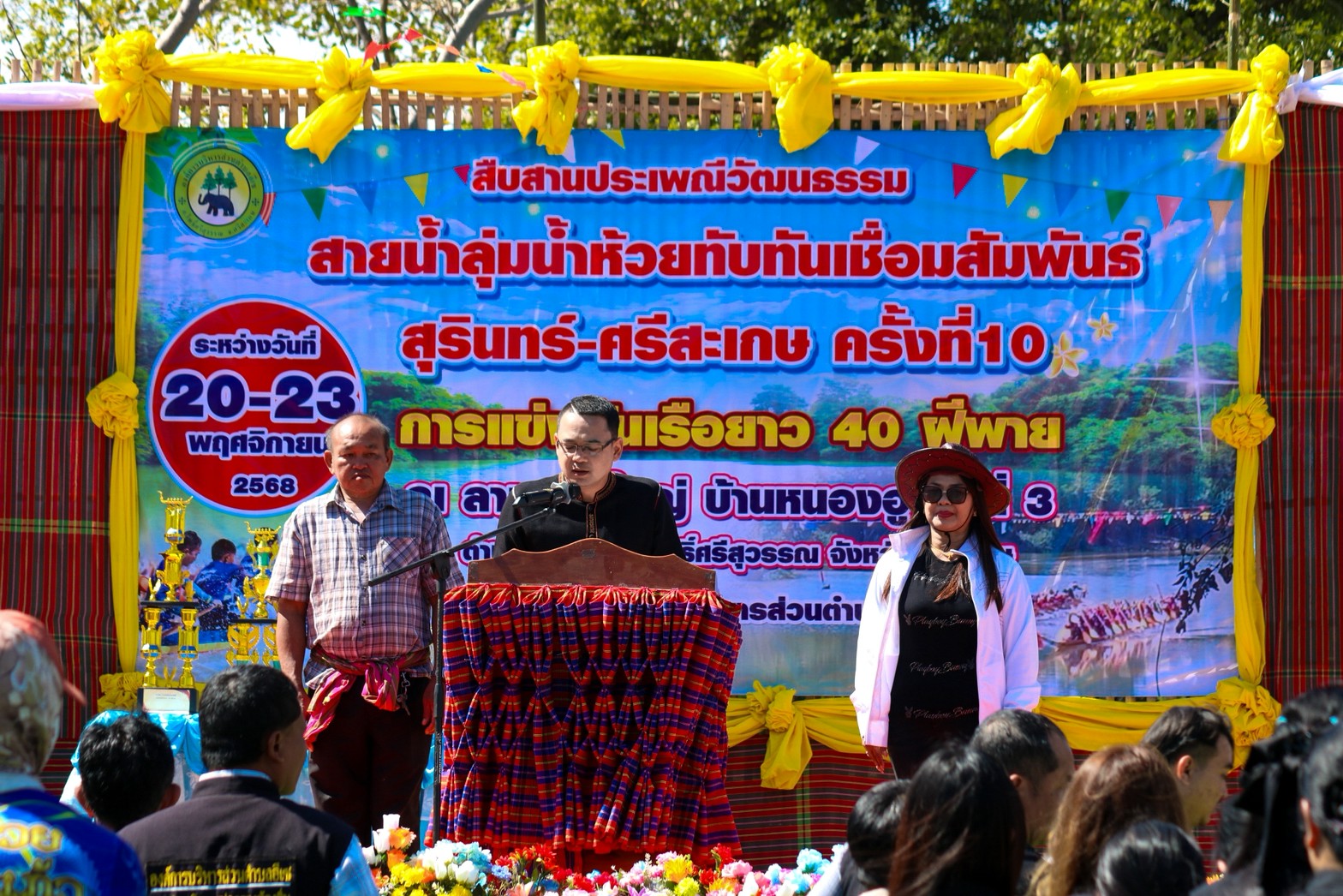 วันที่ 23 พฤศจิกายน 2568 องค์การบริหารส่วนตำบลอีเซ ดำเนินกิจกรรมแข่งขันเรือยาว 40 ฝีพาย ในโครงการสืบสานประเพณี วัฒนธรรมสายน้ำลุ่มน้ำหัวยทับทันเชื่อมสัมพันธ์สุรินทร์ ศรีสะเกษ ครั้งที่ 10 มอบรางวัลการแข่งขันเรือยาว /เรือหาปลา และกล่าวปิดโครงการสืบสานประเพณีวัฒนธรรมสายน้ำลุ่มน้ำห้วยทับทันสานสัมพันธ์ สุรินทร์-ศรีสะเกษ ครั้งที่ 10